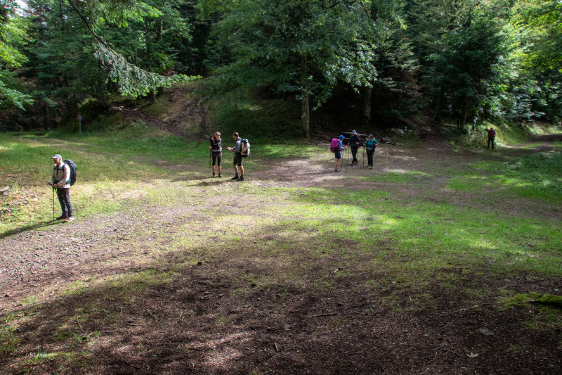 Le chemin nous mène tranquillement à la ferme-auberge du Belacker (979m) avec ses lamas, puis au col de Rimbach (940m), suivi par le Rimbachkopf (1195m) et enfin le col des Perches (1071m) où nous pique-niquons assez tard. A ce propos, les pique-niques sont presque aussi copieux que les repas du soir !