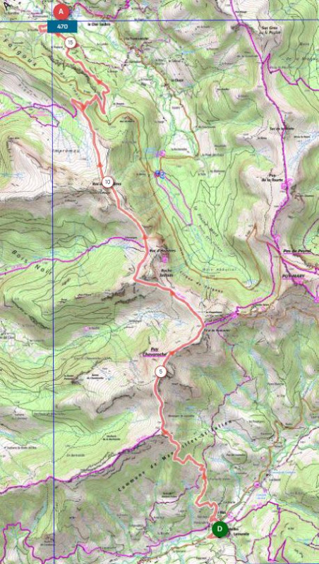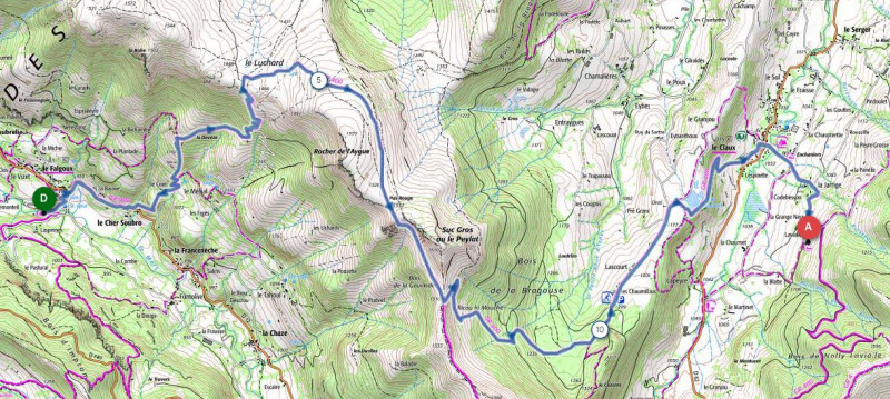 Après avoir passé Roche Taillade, puis le Roc d’Hozières nous pouvons entamer la longue descente vers Le Falgoux.