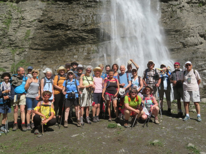 Une fois là, il ne reste plus qu’à descendre… Une bonne averse nous ralentit dans notre progression au niveau du refuge d’Anterne. Nous traversons ensuite un champ de rhododendrons en fleurs, puis après une bonne descente nous trouvons les cascades de la Chauffaz et de la Pleureuse. Les voitures ne sont plus très loin et les premiers chauffeurs feront une navette pour récupérer les retardataires au Lignon. Dure journée : nous sommes partis ce matin à 8h du Choucas… et nous y rentrons à 19h30 ! Mais tout le monde a encore dans les yeux les paysages de la journée !