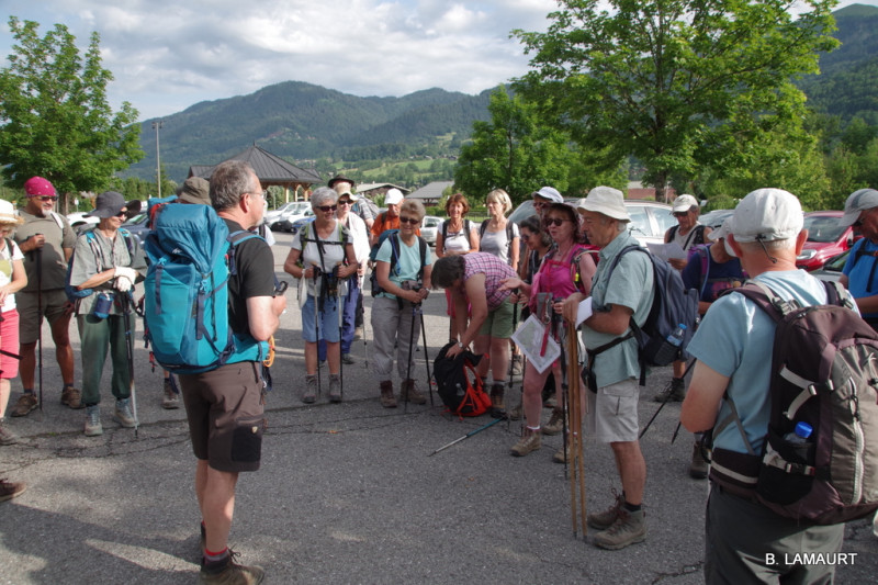 La randonnée nous conduit autour de la vallée du Giffre entre Samoëns et les gorges des Tines. Elle sera un peu perturbée par les chutes d'arbres, mais nous trouvons quand même un chemin pour éviter un passage où les arbres tombés sont infranchissables! Au retour, à Samoëns, nous tombons sur un sculpteur qui nous explique son travail, puis au moment de visiter le jardin botanique de la Jaysinia, nous trouvons porte close! des  branches d'arbre sont tombées... Qu'importe, nous y retournerons une autre fois!