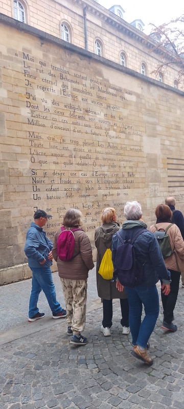 Au programme donc, le Procope, le bar du Bouillon , pour finir par les deux Magots, mais aussi les demeures de Victor Hugo, Emile Littré, Jean Giono et quelques curiosités comme ce mètre étalon situé derrière le jardin du Luxembourg ou le Bateau Ivre écrit sur un mur , rue Jouvenel.
